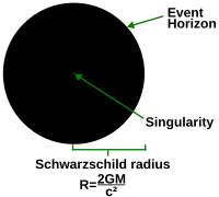 General relativity predicts that any object collapsing beyond a certain point (for stars this is the Schwarzschild radius) would form a black hole, inside which a singularity (covered by an event horizon) would be formed.[3] The Penrose–Hawking singularity theorems define a singularity to have geodesics that cannot be extended in a smooth manner.[4] The termination of such a geodesic is considered to be the singularity.