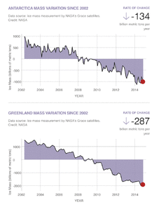 - ^ Velicogna, Isabella; Sutterly, T.C.; van den Broeke, M.R. (2014). "Regional acceleration in ice mass loss from Greenland and Antarctica using GRACE time-variable gravity data". J. Geophys. Res. Space Phys. 41 (119): 8130–8137. Bibcode:2014GeoRL..41.8130V. doi:10.1002/2014GL061052. hdl:1874/308354.