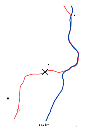 On 26 February, an interim report published by the Rail Accident Investigation Branch outlined the current progress of the investigation.[17] The report contained a single conclusion, that the immediate cause of the accident was the condition of the stretcher bar arrangement at points 2B at Lambrigg crossover, which resulted in the loss of gauge separation of the point switch blades. The stretcher bars (components that hold the moving blades of the points the correct distance apart) had been found to be disconnected or missing. Of the three bars, one was not in position, another had nuts and bolts missing, and two were fractured. The points in question were facing the direction of travel of the train.