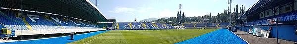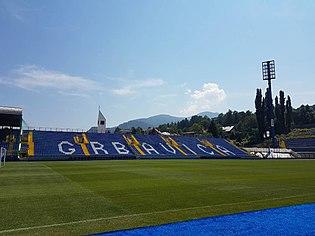 Grbavica Stadium (Serbo-Croatian: Stadion Grbavica / Стадион Грбавица) is located in Grbavica, Sarajevo, Bosnia and Herzegovina. This football stadium has terraces close to the pitch and it is the home stadium of FK Željezničar Sarajevo and one of two stadiums of the national football team of Bosnia and Herzegovina. The stadium has a capacity to hold 13,146 seated spectators, with more room for standing spectators under South stands (capacity up to 16,000). Grbavica Stadium is also known as Dolina ćupova (en. Valley of Jars).[1]