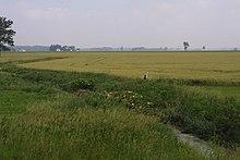 The ridge was formed at the southern shore of the ancient lake. In the distance, a completely flat expanse of agricultural land extends to the horizon. In the foreground a ditch used to drain the swamp is visible.[1][2]