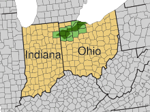 The land once covered by the swamp lies primarily within the Maumee River and Portage River watersheds in northwest Ohio and northeast Indiana. The boundary was determined primarily by ancient sandy beach ridges formed on the shores of Lakes Maumee and Whittlesey, after glacial retreat several thousand years ago. It stretched roughly from Fort Wayne, Indiana, eastward to the Ottawa National Wildlife Refuge near Port Clinton along the Lake Erie shore, and from (roughly) US 6 south to Findlay[6] and North Star, Ohio in Darke County.[7] Near its southern edge at the southwestern corner of present-day Auglaize County, wheeled transportation was impossible during most of the year, and local residents thought the rigors of travel to be unsuitable for anyone except adult men.[8]