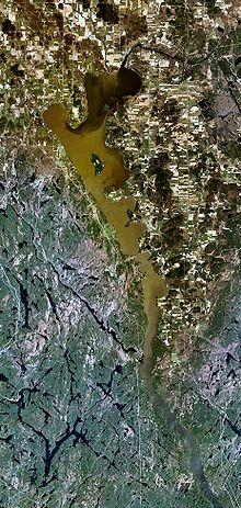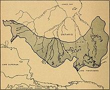 The Clay Belt is a vast tract of fertile soil stretching between the Cochrane District in Ontario, and Abitibi County in Quebec, covering 180,000 square kilometres (69,000 sq mi) in total[1] with 120,000 square kilometres (46,000 sq mi) of that in Ontario.[2] It is generally subdivided into the Great Clay Belt to the north running eastward from Kapuskasing, past Lake Abitibi and on to Amos, and the V-shaped Lesser Clay Belt to its south, running from Englehart down to the Wabi River to the northern tip of Lake Timiskaming, and long the eastern side of Timiskaming and back up to Rouyn-Noranda. The Clay Belt is the result of the draining of the Glacial Lake Ojibway around 8,200 BP, whose lakebed sediment forms the modern landform. The Clay Belt is surrounded by the Canadian Shield, forming an island of "southern flatlands" in the midst of the hilly and rocky surroundings. Similar "glaciolacustrine deposits" dot the northern areas of Ontario, Quebec and Labrador.