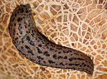 Limax maximus (literally, "biggest slug"), known by the common names great grey slug and leopard slug, is a species of slug in the family Limacidae, the keeled slugs.[3] It is among the largest keeled slugs, Limax cinereoniger being the largest.