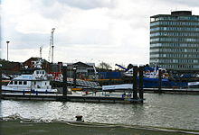 Grimsby is strongly linked with the sea fishing industry, which once generated wealth for the town. At its peak in the 1950s, it was the largest and busiest fishing port in the world.[23] As a result of the Cod Wars with Iceland, and the European Union's Common Fisheries Policy this industry has been in decline for many years. In 1970 around 400 trawlers were based in the port, by 2013 only five remained, whereas 15 vessels were being used to maintain offshore wind farms in the North Sea.[25] The town still has the largest fish market in the UK, but most of what is sold is brought overland from other ports or from Iceland by containerisation. Of the 18,000 tonnes of fresh fish sold in Grimsby fish market in 2012, almost 13,000 tonnes, mainly cod and haddock, came from Iceland.[25]