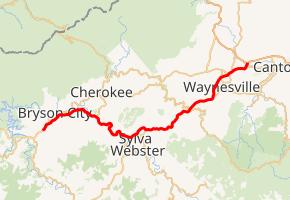 The Great Smoky Mountains Expressway is a 43-mile (69 km) section of US 74; from US 19 (Alarka Road), near Bryson City, to I-40, near Clyde. The expressway also shares concurrences with three other major highways in the region: US 19, US 23 and US 441. The Expressway is broken into five segments: three freeway segments, where all major interchanges occur with 60 miles per hour (97 km/h) speed limit, and two expressway grade segments that links the freeway gaps along the route at 55 miles per hour (89 km/h) speed limit.