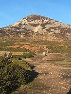 A longer route can be done from the east, starting from lower down at the Kilmacanogue GAA car-park (O233141); this 5-kilometre route from the car-park to the summit and back takes 2–2.5 hours, and is mostly on moorland paths with some scree and gravel sections.[7]