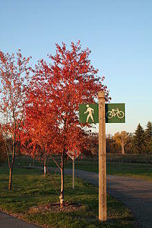 The Greater Grand Forks Greenway is a huge greenway bordering the Red River and Red Lake River in the twin cities of Grand Forks, North Dakota and East Grand Forks, Minnesota (commonly called Greater Grand Forks). At 2,200 acres (9 km2), the Greenway is more than twice the size of New York City's Central Park.[1] It has an extensive, 20-mile (32 km) system of bike paths, which are used by bikers, walkers, joggers, and rollerbladers.[2] In 2007, the system was designated as a National Recreation Trail by the National Park Service.[3]