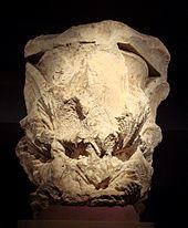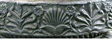 The scope of adoption goes from designs such as the bead and reel pattern, the central flame palmette design and a variety of other moldings, to the lifelike rendering of animal sculpture and the design and function of the Ionic anta capital in the palace of Pataliputra.[33]