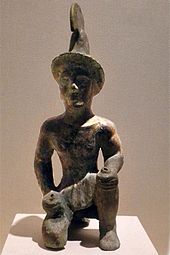 Several statuettes and representations of Greek soldiers have been found north of the Tian Shan, on the doorstep to China, and are today on display in the Xinjiang museum at Ürümqi (Boardman).[21] Middle Eastern or Greek influences on Chinese art have also been suggested (Hirth, Rostovtzeff). Designs with rosette flowers, geometric lines, and glass inlays, suggestive of Egyptian, Persian, and/or Hellenistic influences,[22] can be found on some early Han dynasty bronze mirrors.[23]