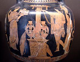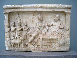 Hero cults were offered most prominently to men, though in practice the experience of the votary was of propitiating a cluster of family figures, which included women who were wives of a hero-husband, mothers of a hero-son (Alcmene and Semele), and daughters of a hero-father.[13] As Finley observed of the world of Odysseus, which he reads as a nostalgic eighth-century rendering of traditions from the culture of Dark Age Greece,