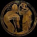 The Trojan War cycle, a collection of epic poems, starts with the events leading up to the war: Eris and the golden apple of Kallisti, the Judgement of Paris, the abduction of Helen, the sacrifice of Iphigenia at Aulis. To recover Helen, the Greeks launched a great expedition under the overall command of Menelaus's brother, Agamemnon, king of Argos, or Mycenae, but the Trojans refused to return Helen. The Iliad, which is set in the tenth year of the war, tells of the quarrel between Agamemnon and Achilles, who was the finest Greek warrior, and the consequent deaths in battle of Achilles' beloved comrade Patroclus and Priam's eldest son, Hector. After Hector's death the Trojans were joined by two exotic allies, Penthesilea, queen of the Amazons, and Memnon, king of the Ethiopians and son of the dawn-goddess Eos.[53] Achilles killed both of these, but Paris then managed to kill Achilles with an arrow in the heel. Achilles' heel was the only part of his body which was not invulnerable to damage by human weaponry. Before they could take Troy, the Greeks had to steal from the citadel the wooden image of Pallas Athena (the Palladium). Finally, with Athena's help, they built the Trojan Horse. Despite the warnings of Priam's daughter Cassandra, the Trojans were persuaded by Sinon, a Greek who feigned desertion, to take the horse inside the walls of Troy as an offering to Athena; the priest Laocoon, who tried to have the horse destroyed, was killed by sea-serpents. At night the Greek fleet returned, and the Greeks from the horse opened the gates of Troy. In the total sack that followed, Priam and his remaining sons were slaughtered; the Trojan women passed into slavery in various cities of Greece. The adventurous homeward voyages of the Greek leaders (including the wanderings of Odysseus and Aeneas (the Aeneid), and the murder of Agamemnon) were told in two epics, the Returns (the lost Nostoi) and Homer's Odyssey.[52] The Trojan cycle also includes the adventures of the children of the Trojan generation (e.g., Orestes and Telemachus).[53]
