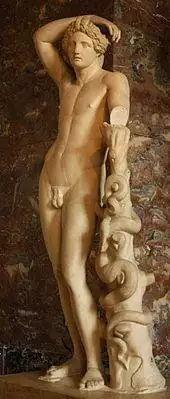 After the middle of the Archaic period, myths about relationships between male gods and male heroes became more and more frequent, indicating the parallel development of pedagogic pederasty (παιδικὸς ἔρως, eros paidikos), thought to have been introduced around 630 BC. By the end of the fifth-century BC, poets had assigned at least one eromenos, an adolescent boy who was their sexual companion, to every important god except Ares and many legendary figures.[16] Previously existing myths, such as those of Achilles and Patroclus, also then were cast in a pederastic light.[17]:54 Alexandrian poets at first, then more generally literary mythographers in the early Roman Empire, often re-adapted stories of Greek mythological characters in this fashion.