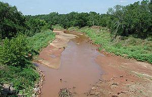 Arming themselves, an estimated 800 to 1000 rebels, "the vast majority of old American stock," met on the banks of the South Canadian River and made plans to head east and to live off the land as they marched.[28] They would eat roasted "green corn" and barbecued beef on the way, it was later said, and eventually join up with countless thousands of likeminded comrades, who would together march on Washington, DC, where they would overthrow "Big Slick" Wilson, repeal the Draft Act, and end the war.[29]
