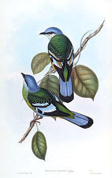 The green cochoa (Cochoa viridis) is a bird species that was variously placed with the thrushes of family Turdidae or the related Muscicapidae (Old World flycatchers). It is considered closer to the former.[2]
