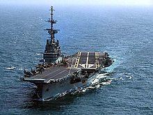 During the Cold War, green water denoted those areas of ocean in which naval forces might encounter land-based aircraft.[3] The development of long-range bombers with anti-ship missiles turned most of the oceans to "green" and the term all but disappeared.[3] After the Cold War, US amphibious task forces were sometimes referred to as the green-water navy, in contrast to the blue-water carrier battle groups.[5] This distinction disappeared as increasing threats in coastal waters forced the amphibious ships further offshore, delivering assaults by helicopter and tiltrotor from over the horizon. This prompted the development of ships designed to operate in such waters – the Zumwalt-class destroyer and the littoral combat ships; modeling has suggested that current NATO frigates are vulnerable to swarms of 4-8 small boats in green water.[6] Rubel has proposed redefining green water as those areas of ocean which are too dangerous for high-value units, requiring offensive power to be dispersed into smaller vessels such as submarines that can use stealth and other characteristics to survive.[3] Under his scheme, brown water would be zones in which ocean-going units could not operate at all, including rivers, minefields, straits, and other choke points.[3]