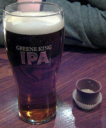 - Greene King IPA - An English IPA (3.6% abv) served in pubs and cans available from supermarkets and off-licences nationally. It is made using Challenger and First Gold hops and using pale and crystal malt.[46] Greene King IPA controversially won the Gold award at the 2004 Campaign for Real Ale (CAMRA) Great British Beer Festival in the Bitter category and runner-up in the Champion Beer of Britain category.[47] In 2009, Greene King began to roll out a new form of dispense which allows customers to choose either a "Northern" or a "Southern" head on their beer.[48] In 2012, two extensions of the brand were launched: Gold and Reserve.[49]