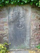A walled, roofless structure rebuilt some time after 1894 is the mausoleum of John Livingstone,[3] an apothecary and former laird of the estate. It was paid for by his widow Elizabeth Rig. It stood in the grounds of the manor house before its demolition and is now situated adjacent to a smaller private Victorian villa. A tombstone carries the date 1645.[4] The roughly square area contains an information plaque, memorial bench, and plants. Its continued existence was the subject of a bitter legal dispute after the villa changed ownership.[5]