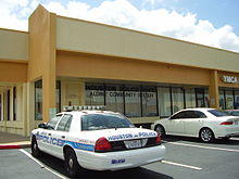 The portion of Greenspoint within Houston is part of Houston City Council district B.[39] The Houston Police Department (HPD) serves the Houston portions of Greenspoint from the North Belt Police Station.[40] The station, in a temporary office building location was of 2020, opened in January 2018.[41] HPD previously served it as part of the North Patrol Division,[42] While Greenspoint was a part of the North District, HPD operated two "storefronts" – small police stations located in retail centers – in the area: Aldine Storefront along Interstate 45 near Airline Drive and Greenspoint Storefront on the grounds of Greenspoint Mall.[43][44]