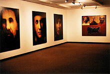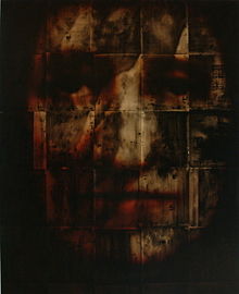 "The images are based on old photographs from Russia which Edmonson uses as raw material - selecting fragments and snippets of characteristics from different individuals, the common people, reinterpreting and creating new faces that are amalgamations of several..." [3] Edmonson's use of shadows metaphorically suggests the fragmentary nature of history and memory - parts hidden from view, others slowly emerging from which we can begin to formulate an understanding of the whole. In a 1994 artist's statement, Edmonson commented that an earlier interest in tar pits in Alberta led to his archeological interpretation of memory: "where amongst the dark matter of tar have been found the remnants of life forms, which act as a kind of physical symbol of how time displaces history and memory." [4]