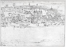 In 1539, in response to the potential threat of invasion by his Roman Catholic enemies, Charles V and Francis I, Henry VIII prepared for the worst by fortifying the coasts and fitting out his navy, and ordered a muster of all his male subjects, aged from sixteen to sixty. The Lord Mayor of London ordered a general muster of the citizens to be held at Mile End on Thursday, 8 May. It was a formidable display of the king's power – three divisions, each of five thousand men and their attendants marched through the city to the Palace of Westminster, where the King stood in his gatehouse, to see them as they passed by. The size of the muster was estimated, by the Lord Chancellor, Thomas Audley, to have been about sixteen and a half thousand men.[145][146] Thomas Cromwell played his part, sending a great number of men and weapons among the citizens of London. They were led by a veritable forest of pike-men, bowmen and gunners in the thousands, and followed by weaponry drawn on carts, moving through the city to parade past Henry VIII at Westminster.[147] Cromwell's son and heir, Gregory and his nephew, Richard Cromwell rode with muster, together with Sir Christofer Norris, Master of the Ordinance, "and other of the Kinges servantes." They followed "the end of the last battell, rydinge on goodly horses and well apparayled."[148]