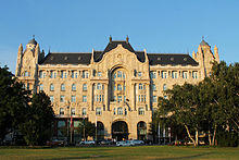 The Gresham Palace (Gresham-palota) is a building in Budapest, Hungary; it is an example of Art Nouveau architecture. Completed in 1906 as an office and apartment building, it is today the Four Seasons Hotel Budapest Gresham Palace, a luxury hotel managed by Four Seasons Hotels. It is located along the River Danube, adjacent to Széchenyi Square and the eastern terminus of the Széchenyi Chain Bridge.