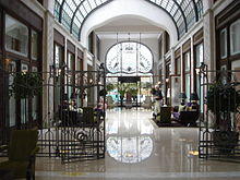 In 2001, the building was bought by the Irish investment company Quinlan Private. They extensively rebuilt the structure as a luxury hotel, restoring such original details as a large staircase, stained glass, mosaics, ironwork, and winter gardens. The hotel reopened in June 2004.[3] In November 2011, the hotel was bought by the State General Reserve Fund of Oman, though Four Seasons continues to manage it. It currently has 179 guest rooms, including 17 suites.