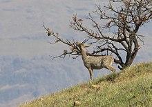 The grey rhebok or grey rhebuck (Pelea capreolus), locally known as the reebok in Afrikaans, is a species of antelope native to South Africa, Zimbabwe, Lesotho, and Eswatini (Swaziland). The specific name capreolus is Latin for 'little goat'.