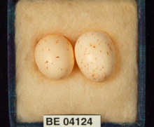 The breeding ecology of the grey-headed honeyeater is poorly understood.[9] Breeding is thought to mainly occur during winter and spring; however, it may occur at any time across the species range, possibly following rainfall.[9] Nests are constructed low in a live tree or shrub, within a dry creek bed or bank, but usually not near water.[9] The nest is a small, open, compact, cup-shaped structure made from dried plant stems, grass and bark bound by spider webs.[9] The nest is lined with plant down, feathers, and animal hair, and suspended from the tree or shrub.[9] Clutch size is thought to be two eggs variously described as oval, lengthened, rounded, glossy, lustreless, white, pink, sometimes unmarked or with light brown or purple spots.[9] The incubation period is unknown, and it is thought that only a single brood is raised annually.[9] Both sexes have been recorded performing distraction displays, when nests are approached.[9]
