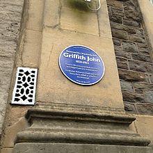 - ^ Thomas, Geraint (16 September 2013). "Blue plaque unveiled in memory of Swansea missionary Griffith John". South Wales Evening Post. Retrieved 29 October 2016.