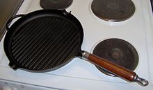 Heat transfer to the food when using a grill is primarily through thermal radiation. Heat transfer when using a grill pan or griddle is by direct conduction. In the United States, when the heat source for grilling comes from above, grilling is called broiling.[2] In this case, the pan that holds the food is called a broiler pan, and heat transfer is through thermal radiation.