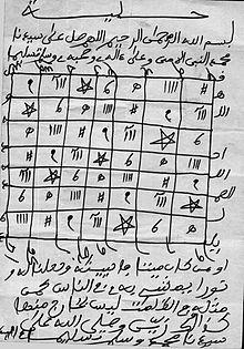 The gris-gris originated in Dagomba in Ghana and was associated with Islamic traditions.[4] Originally the gris-gris was adorned with Islamic scripture and was used to ward off evil spirits (evil djinn) or bad luck.[4] Historians of the time noted that they were frequently worn by non-believers and believers alike, and were also found attached to buildings.[4]