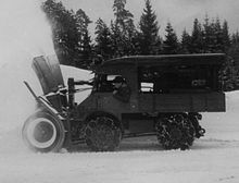 Military winter service vehicles are heavily armoured to allow for their use in combat zones, especially in Arctic and mountain warfare, and often based on combat bulldozers or Humvees.[20] Military winter service vehicles have been used by the United Nations, Kosovo Force, and the US Army in Central Europe during the Kosovo War,[21] while during the Cold War, the Royal Marines and Royal Corps of Signals deployed a number of tracked vehicles in Norway to patrol the NATO border with the Soviet Union.[22][23]