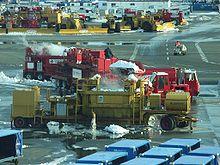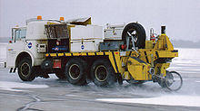 A winter service vehicle (WSV), or snow removal vehicle, is a vehicle specially designed or adapted to clear thoroughfares of ice and snow.[1][2][3] Winter service vehicles are usually based on a dump truck chassis, with adaptations allowing them to carry specially designed snow removal equipment. Many authorities also use smaller vehicles on sidewalks, footpaths, and cycleways. Road maintenance agencies and contractors in temperate or polar areas often own several winter service vehicles, using them to keep the roads clear of snow and ice and safe for driving during winter.[4][5] Airports use winter service vehicles to keep both aircraft surfaces, and runways and taxiways free of snow and ice, which, besides endangering aircraft takeoff and landing, can interfere with the aerodynamics of the craft.[6][7]