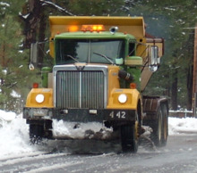 Weather conditions typically vary greatly depending on altitude; hot countries can experience heavy snowfall in mountainous regions yet receive very little in low-lying areas, increasing the accident rate among drivers inexperienced in winter driving. In addition, road surface temperatures can fall rapidly at higher altitudes, precipitating rapid frost formation. As a result, gritting and plowing runs are often prioritised in favour of clearing these mountain roads, especially at the start and end of the snow season.[29] The hazardous roads through mountain passes pose additional problems for the large winter service vehicles. The heavy metal frame and bulky grit makes hill climbing demanding for the vehicle, so vehicles have extremely high torque transmission systems to provide enough power to make the climb.[11] Furthermore, because the tight hairpin turns found on mountain slopes are difficult for long vehicles to navigate, winter service vehicles for use in mountainous areas are shortened, usually from six wheels to four.[12]