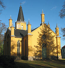 View from the Battle of Großbeeren Memorial Tower, north towards the village church. Berlin's skyline in the background. | |