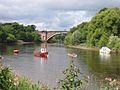 View of Curzon Park looking down-river from the bridge, showing the width of the Dee at this point. Photo taken in spring at high tide.