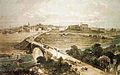 Copper-plate engraving of the bridge soon after completion, showing the view up-river towards Handbridge