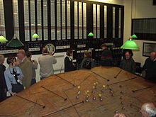 In the original Dowding system of fighter control, information from the Chain Home coastal radar stations was relayed by phone to a number of operators on the ground floor of the "filter room" at Fighter Command's headquarters at RAF Bentley Priory. Here the information from the radar was combined with reports from the Royal Observer Corps and radio direction finding systems and merged to produce a single set of "tracks", identified by number. These tracks were then telephoned to the Group headquarters that would be responsible for dealing with that target. Group would assign fighter squadrons to the tracks, and phone the information to Section headquarters, who were in direct contact with the fighters. These fighter aircraft could then be "scrambled" to intercept the aircraft.