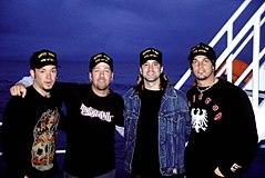 Strong states that "... sections of what was [US] hardcore became known as grunge."[19] Seattle songwriter Jeff Stetson states that "[t]here is no real difference ... between Punk and Grunge."[27] Like punk bands, grunge groups were "embraced as back-to-basics rock 'n' roll bands which reminded the public that the music was supposed to be raw and raunchy", and they were a response to "bloated and over-the-top ... progressive rock ... or "not seriou[s groups] like the hair bands of the '80s."[92] One example of the influence of US hardcore on grunge is the impact that the Los Angeles hardcore punk band Black Flag had on grunge. Black Flag's 1984 record My War, on which the band combined heavy metal with their traditional sound, made a strong impact in Seattle. Mudhoney's Steve Turner commented, "A lot of other people around the country hated the fact that Black Flag slowed down ... but up here it was really great ... we were like 'Yay!' They were weird and fucked-up sounding."[175] Turner explained grunge's integration of metal influences, noting, "Hard rock and metal was never that much of an enemy of punk like it was for other scenes. Here, it was like, 'There's only twenty people here, you can't really find a group to hate.'" Charles R. Cross states that grunge was the "... culmination of twenty years of punk rock" development.[36] Cross states that the bands most representing the grunge genre were Seattle bands Blood Circus, TAD, and Mudhoney and Sub Pop's Denver band The Fluid; he states that Nirvana, with its pop influences and blend of Sonic Youth and Cheap Trick, was lighter-sounding than bands like Blood Circus.[36]