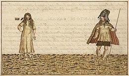 The native term guanchinet literally translated means "person of Tenerife" (from Guan = person and Chinet = Tenerife).[1] It was modified, according to Juan Núñez de la Peña, by the Castilians into "Guanchos".[4] Though etymologically being an ancient, Tenerife-specific, term, the word Guanche is now mostly used to refer to the pre-Hispanic aboriginal inhabitants of the entire archipelago.[5]