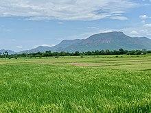 Gudimallam is one of many small villages in a valley of Eastern Ghats of India that passes through Kalahasti and Kuppam.[2] These Ghats along with small rivers originating in these rocky hills and mountains stretch along the eastern coast of India. The village Gudimallam is surrounded by agricultural fields irrigated by the waters of river Swarnamukhi located about 1 kilometer northwest of the village and one that originates in Chandragiri hills.[1][2] The valley is punctuated by forested Tirumala and Horsely hills rich in trapezoid rock called Tirupati Khandolite, a rock that was historically the building material for several temples in Gudimallam and many more in the Kalahasti and Chittoor region.[1][2]