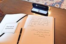 A guestbook (also guest book, visitor log, visitors' book, visitors' album) is a paper or electronic means for a visitor to acknowledge a visit to a site, physical or web-based, and leave details such as their name, postal or electronic address and any comments. Such paper-based ledgers or books are traditional in churches, at weddings, funerals, B&Bs, museums, schools, institutions and other private facilities open to the public. Some private homes keep visitors' books. Specialised forms of guestbooks include hotel registers, wherein guests are required to provide their contact information, and Books of Condolence, which are used at funeral homes and more generally after notable public deaths, such as the death of a monarch or president, or after a public disaster, such as an airplane crash.