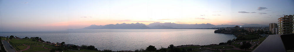 Looking west towards Kemer and the Taurus mountains on the Gulf of Antalya from Antalya city