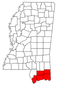 The Gulfport–Biloxi–Pascagoula Combined Statistical Area is made up of five counties in the Mississippi Gulf Coast region. The statistical area consists of the Gulfport–Biloxi Metropolitan Statistical Area and the Pascagoula Metropolitan Statistical Area. As of the 2000 census, the CSA had a population of 396,754. The area was significantly impacted by Hurricane Katrina on August 29, 2005. As of the 2010 Census the estimate placed the population at 411,066 and as of 2014 the estimated population was 427,322.[1]