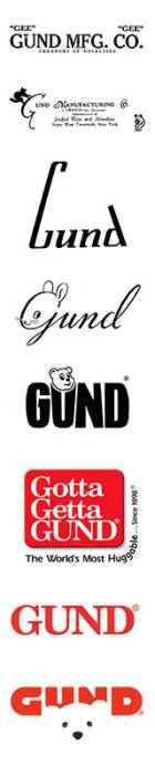 In the 1940s, Gund received trade mark registrations for two versions of its logos, both of which can be seen on its products during that time. One of the logos was a lower-case "g" with bunny ears which became synonymous with the company and its products. The popularity of the logo sparked the creation of a new plush character known as "Gundy." Gundy became the company mascot and grew into merchandising that included the "Gund Club."[6]