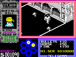 Gunfright was initially released for the ZX Spectrum in 1985[5] and was the last game to be developed under the direct involvement of the Stamper brothers.[6] Realising that the graphical limits of platforms such as the ZX Spectrum had been pushed, future projects such as Blackwyche and Dragon Skulle were handed over to designer brothers Dave and Bob Thomas, who were often uncredited for their work.[7] Gunfright, along with Knight Lore, Alien 8 and Nightshade, were re-released for the MSX in 1986, with Gunfright and Sabre Wulf being ported to the Amstrad CPC later that year.[6]
