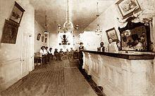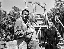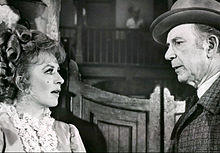 In the radio series, Kitty's profession was hinted at, but never explicit; in a 1953 interview with Time, Macdonnell declared, "Kitty is just someone Matt has to visit every once in a while".[12] The magazine observed that she is "obviously not selling chocolate bars".[13] An out-take from the program makes this hilariously obvious.[14] The television show first portrayed Kitty as a saloon employee (dance-hall girl/prostitute), then from season two, episode 36 ("Daddy-O"), as half-owner of the Long Branch Saloon.