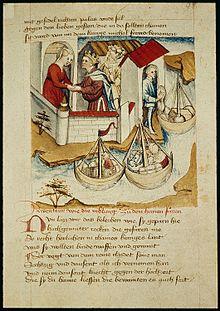 In Waltharius, Gunther (as Guntharius) appears as a king of the Franks with his capital at Worms.[16] At the beginning of the poem, Gunther's father Gibeche (Gibico) has sent his vassal Hagen (Hageno) to the Huns as a hostage because Gunther is still too young. Hagen later flees back to Gibeche's kingdom.[17] When Walter and his love Hiltgunt flee the Huns, taking much treasure, they enter into Gunther's kingdom by crossing the Rhine by Worms. They sell the ferryman fish they had brought with them in exchange for passage, and the ferryman brings these fish, which do not live in the area, to the king. Hagen tells Gunther that this must be Walter, and Gunther declares that now he can reclaim the gold that his father had paid to Attila in tribute. Although Hagen advises against it, the king sets out with some warriors to apprehend Walter and Hiltgunt. When Gunther finds the pair, he demands that Walter give him Hiltgunt and the gold. Walter refuses and kills Gunther's warriors as they attack, despite Gunther's encouragements. Finally, only Gunther and Hagen are left alive; they allow Walter to leave, then attack him from behind. Walter cuts off Gunther's leg, but Hagen saves the king's life when Walter wishes to kill him. After both Hagen and Walter have maimed each other, the fighting stops and Hiltgunt tends the warriors' wounds. The warriors then part in friendship.[18]