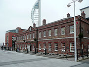 - The old Royal Marines Infirmary building was originally built as an Ordnance Storehouse at around the same time as the Vulcan block; together with other nearby storehouses it was converted to form Gunwharf Barracks, of which it is the only surviving part.[10]
